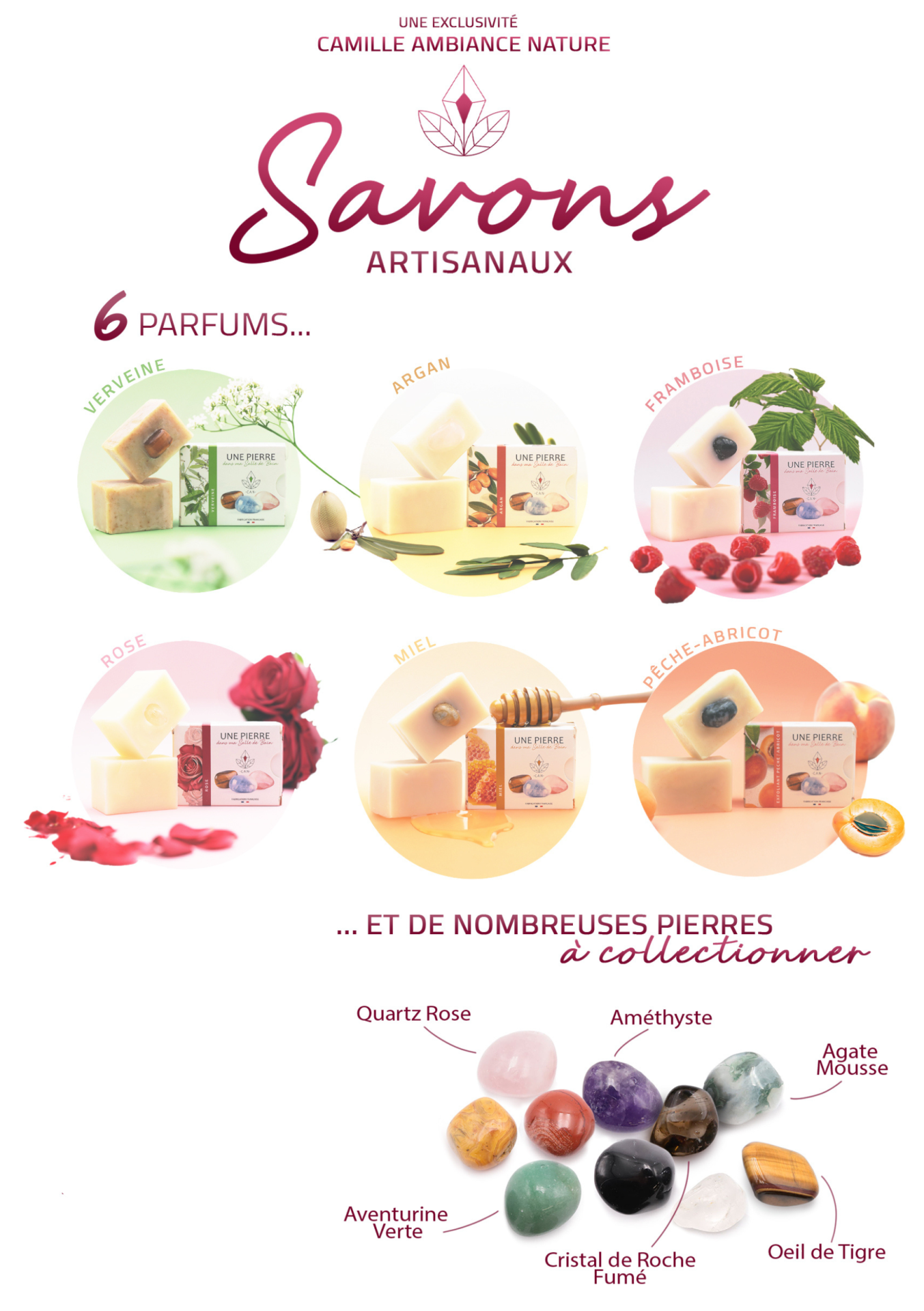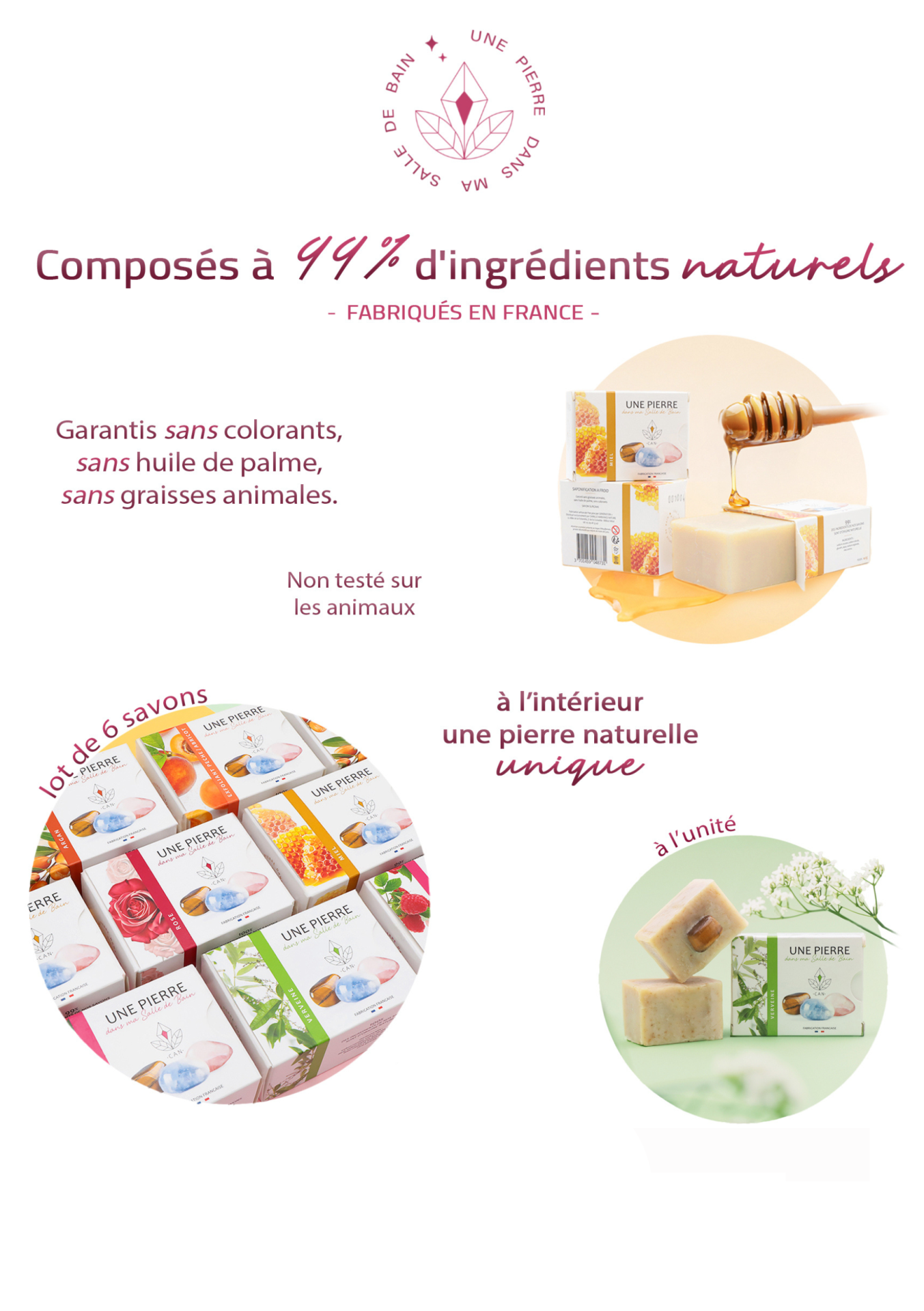 Nous nous engageons à vous fournir des produits de très haute qualité combinant les bienfaits d'un savon naturel aux bienfaits des pierres naturelles.